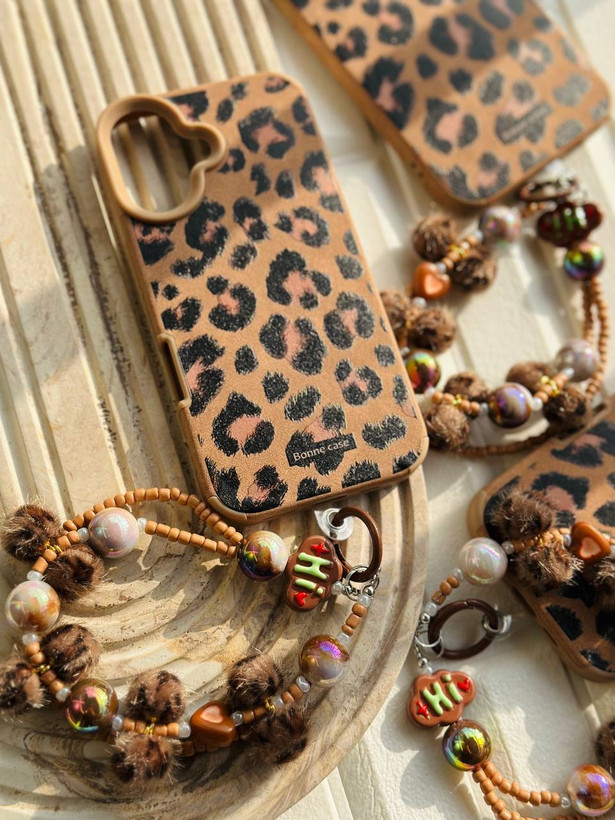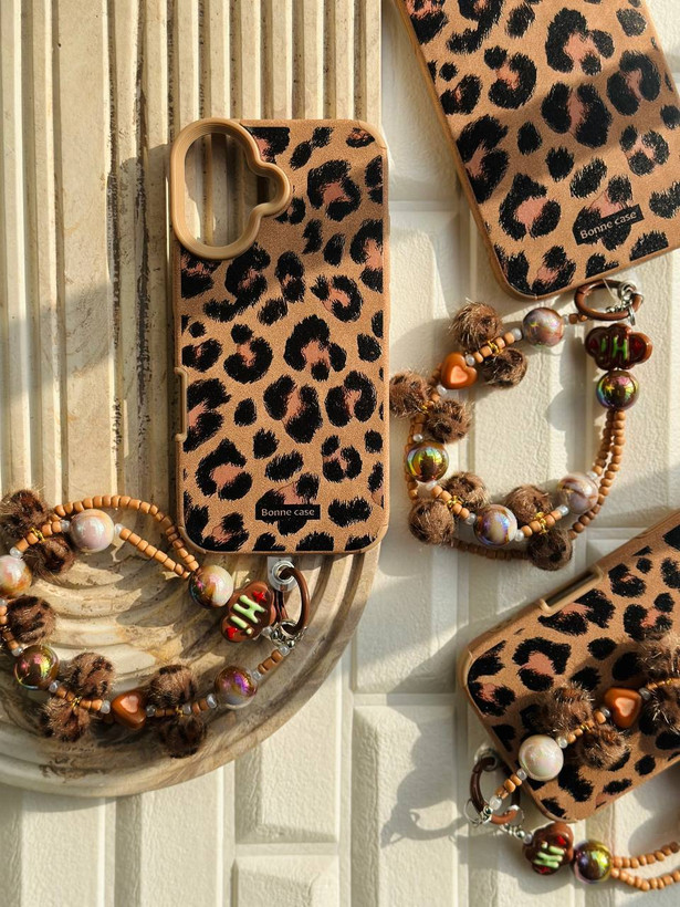 قاب موبایل پلنگی همراه با آویز